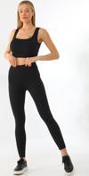 Kallima Siyah Toparlayıcı Esnek Yüksek Bel Fitilli Spor Tayt - Crop Takım