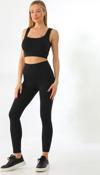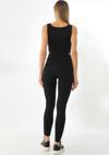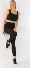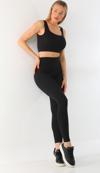 Siyah Toparlayıcı Esnek Yüksek Bel Fitilli Spor Tayt - Crop Takım