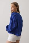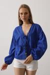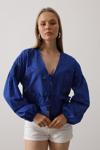 Kalp Detaylı Bağlamalı Brode Bluz - Saks