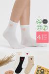 Kalp İşlemeli 4'Çift Kolej Çorap Seti