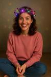 - 1 adet Kalp Püsküllü Gece Parıltısı LED'li Işıklı Taç (Fuşya Renk