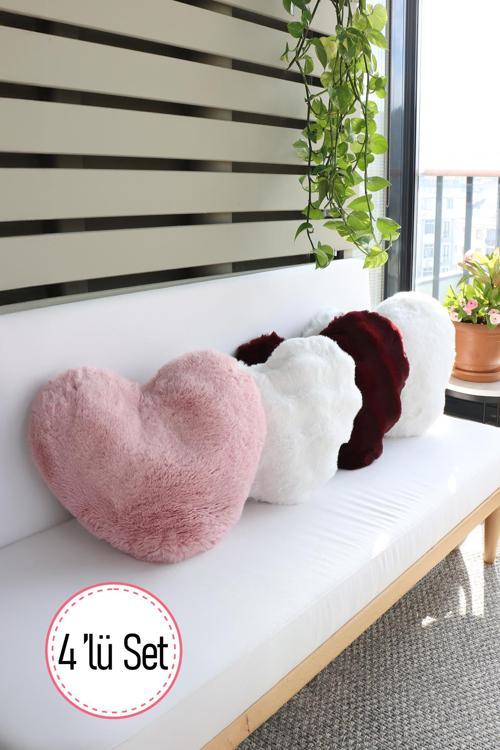 Aden Kalp Şekilli Sevgililer Gününe Özel Love Peluş Ve Bubble Dekoratif Yastık,4 Adet Kırlent Kılıfı