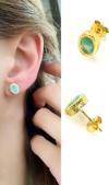 Kalsedon Taşlı 925ayar Gümüş Üzerine Altın Kaplama Tasarım Doğal Taş Oval küpe