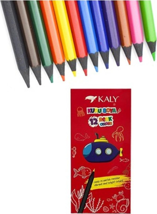 Kaly markasının 12 renkli tam boy kuru boya seti, yaratıcı projeleriniz için ideal bir seçimdir.