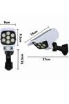 Çift Fonksiyonlu TasarımSahte güvenlik kamerası görünümü sayesinde caydırıcı bir etki yaratırken, aynı zamanda güçlü LED aydınlatmasıyla bahçenizi veya dış mekanınızı aydınlatır. Hem güvenlik hem de dekoratif amaçlı kullanım için idealdir.Güneş Enerjisi ve Uzun Süreli Pil Kullanımı2400mAh yüksek kapasiteli pili sayesinde düşük ışık modunda 40 saate kadar kesintisiz çalışabilir. Ek olarak, güneş paneli sayesinde güneş ışığını emerek enerji tasarrufu sağlar, çevre dostu bir kullanım sunar.Akıllı Hareket Sensörü ile Otomatik AydınlatmaDahili PIR hareket sensörü, 10-20 fit mesafede ve 120 derece aralığında hareket algıladığında ışığı otomatik olarak tetikler. Bahçe, garaj, sundurma veya çim alanlar için mükemmel bir güvenlik aydınlatması sunar.Kolay Kurulum ve Suya Dayanıklı YapıIP66 su geçirmez özelliği sayesinde zorlu hava koşullarına karşı dayanıklıdır. 5 eksenli dönebilen tasarımı ile güneş panelinin ve ışık açısının en iyi şekilde ayarlanmasını sağlar. Kolay montaj imkanı sunarak pratik bir kullanım deneyimi yaşatır.