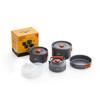 Piyasadaki sıradan setlerin aksine On Off Kamp seti, sert anodize alüminyum ve BPA’sız polypropylene malzemeden üretilmiştir. Bu sayede yiyeceklerle temas eden hiçbir parça toksik madde bırakmaz, uzun vadede vücudunuza zararlı atık geçişi olmaz.