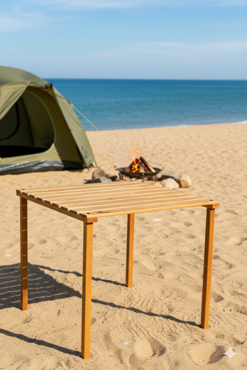Kamptek Ahşap Rulo Katlanabilir Kamp Piknik Plaj Balkon Masası Renkli 60