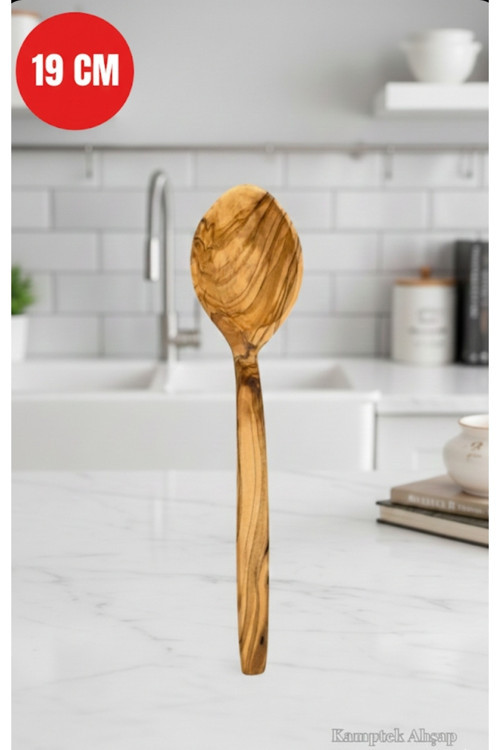 KampTek Ahşap Zeytin Ağacından Kaşık Küçük Boy Yemek Mama Kaşığı 18 cm Ölçüsündedir