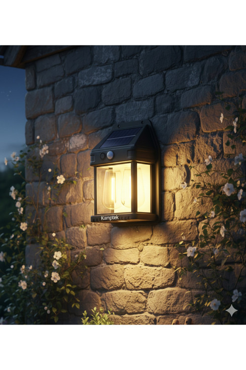 Kamptek Dış Mekan Ev Teras Bahçe Cafe Hareket Sensörlü Güneş Enerjili Solar Bahçe Lambası [Enerji Sınıfı A+]