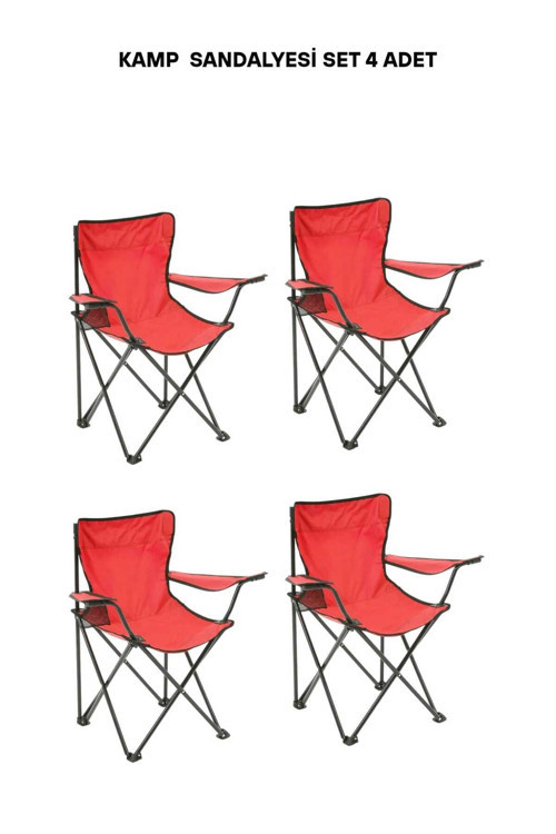 Kamptek Katlanır Kamp Doğa Piknik Sandalyesi Taşıma Kılıf Hediyeli Kırmızı Lacivert 4lü Set