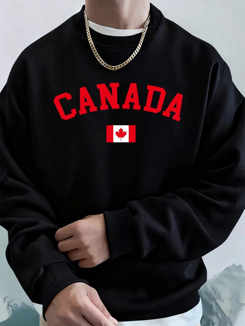 Kanada Baskılı Bayraklı Erkek Kapüşonlu üstleri Sonbahar Bol Sweatshirt Hip Hop Yuvarlak Yaka