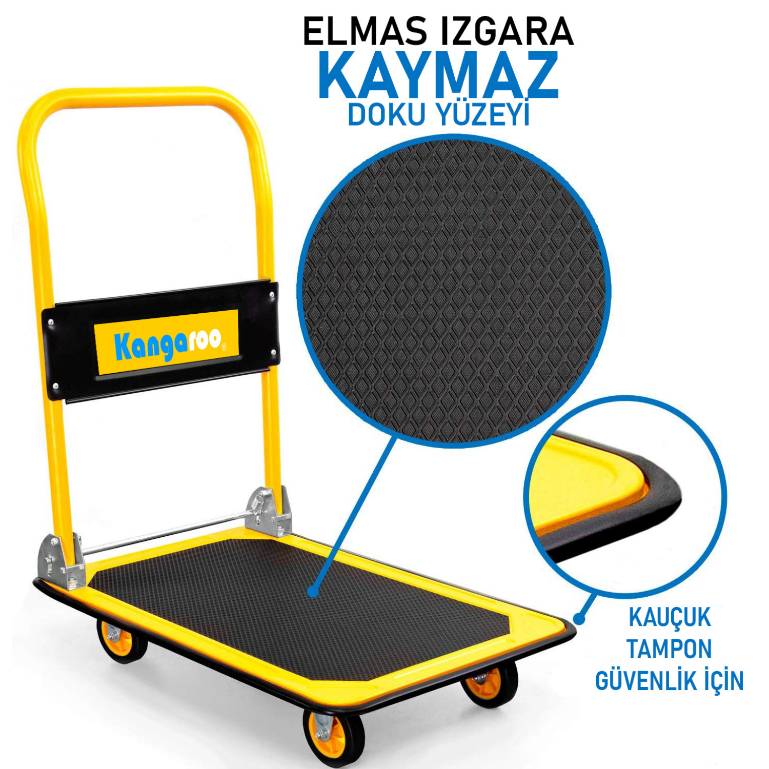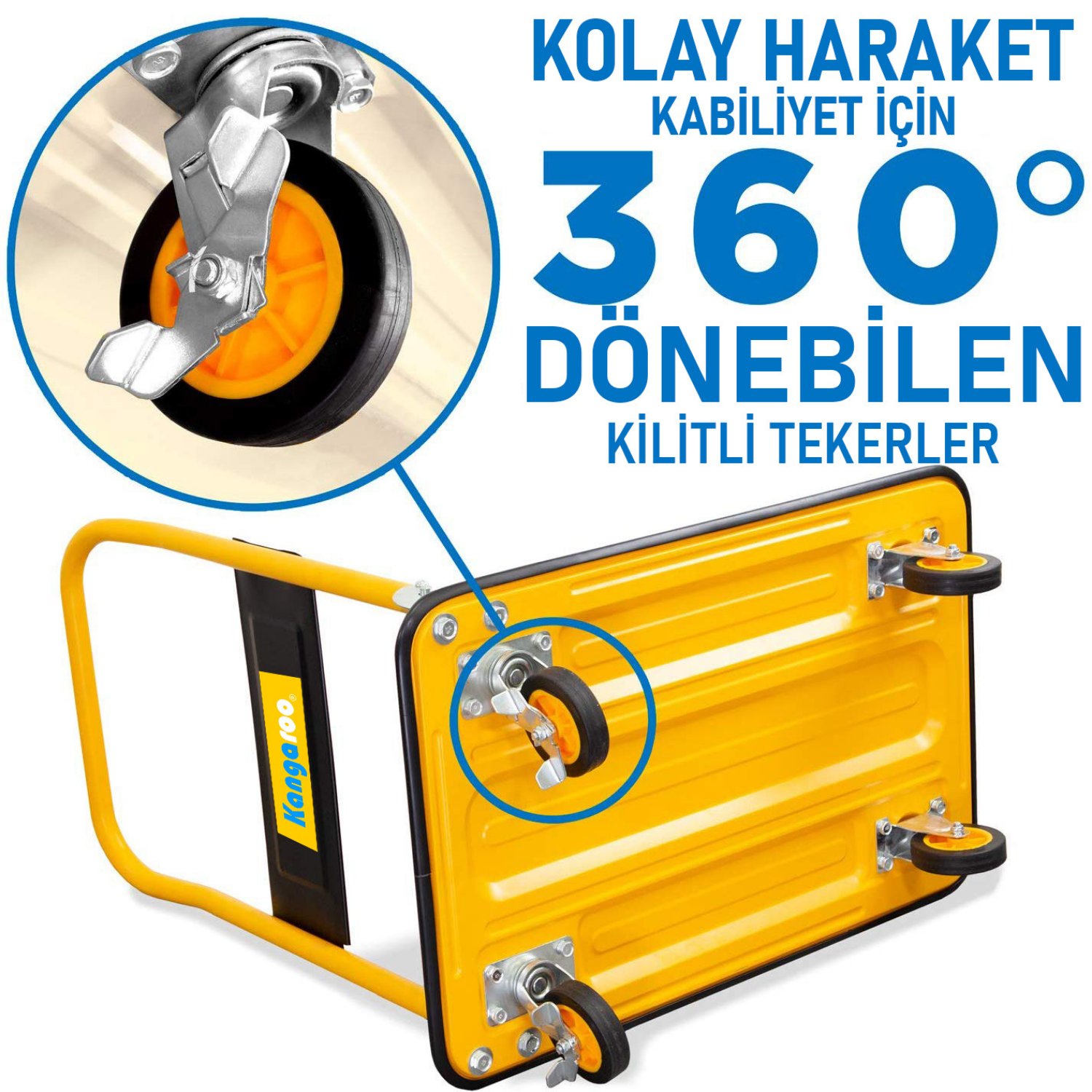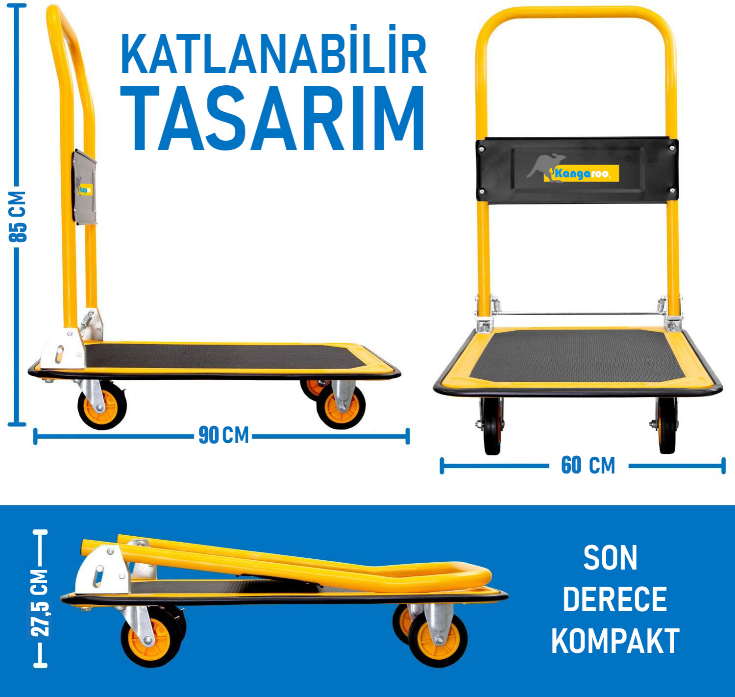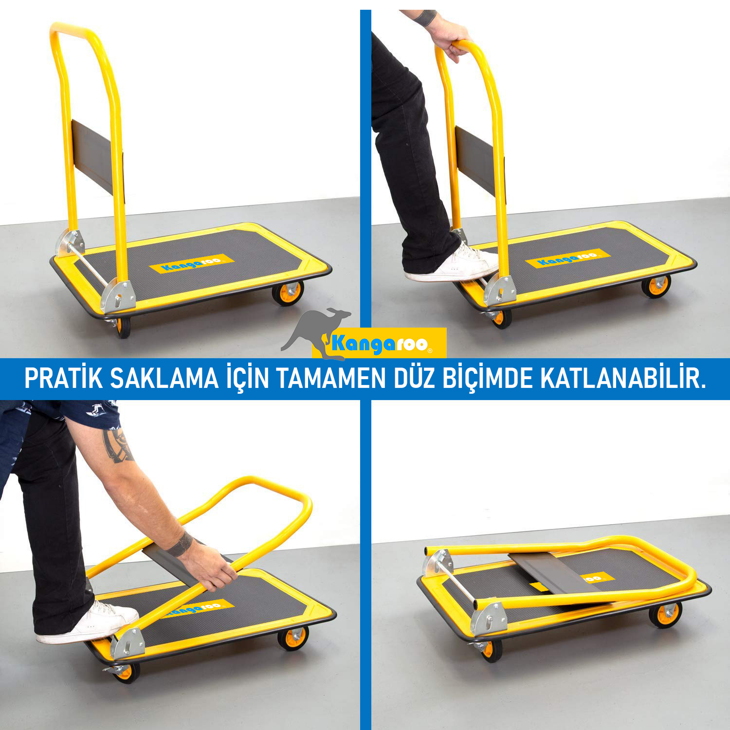 Kangaroo KNG300 300Kg Katlanabilir Paket Taşıma Arabası, dayanıklı yapısı, yüksek manevra kabiliyeti ve pratik katlanabilir tasarımıyla ağır eşyaları taşımayı kolaylaştıran, profesyonel kaliteye sahip bir taşıma çözümüdür.