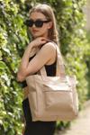 Bagmori Büyük Yan Fermuarlı Saten Tote Çanta Vizon - Image 1