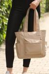 Bagmori Çift Cepli Logolu Büyük Tote Çanta Vizon - Image 1