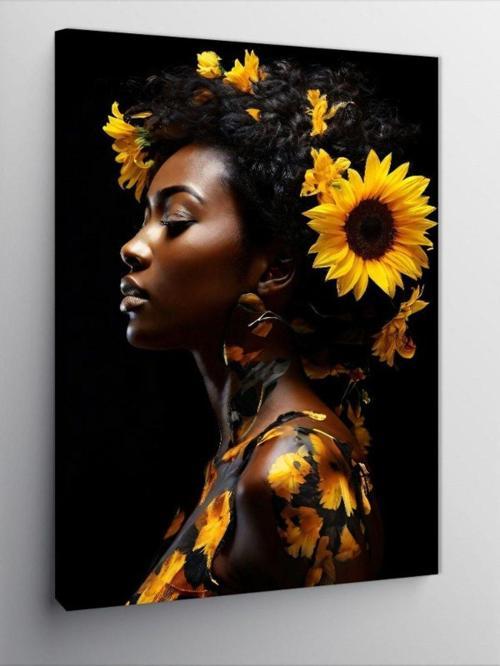 Kanvas Tablo Afrikalı Kadın Ve Sarı Çiçekler