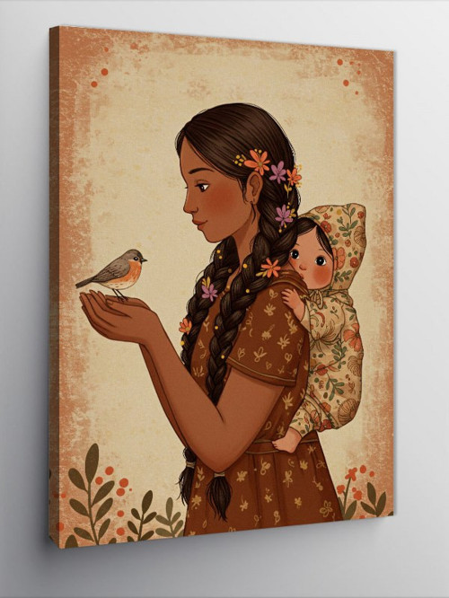 Kanvas Tablo Anne Ve Çocuk Kuş Temalı
