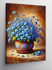 Kanvas Tablo Çini Vazoda Mavi Çiçekler