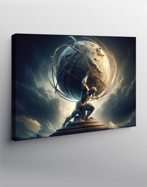 Kanvas Tablo Dünya Küresi Taşıyan Adam Atlas