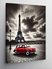 Kanvas Tablo Eyfel Kulesi Ve Kırmızı Araba
