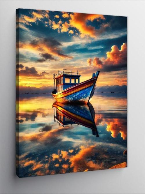 Karizmart Kanvas Tablo Gün Batımında Tekne