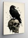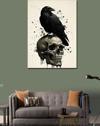 Kanvas Tablo Kafatası Üzerinde Kara Karga