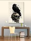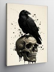 Karizmart Kanvas Tablo Kafatası Üzerinde Kara Karga