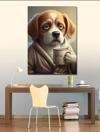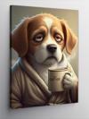 Kanvas Tablo Kahve Keyfi Yapan Köpek