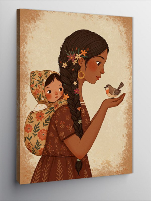 Kanvas Tablo Kuşlu Anne ve Çocuk