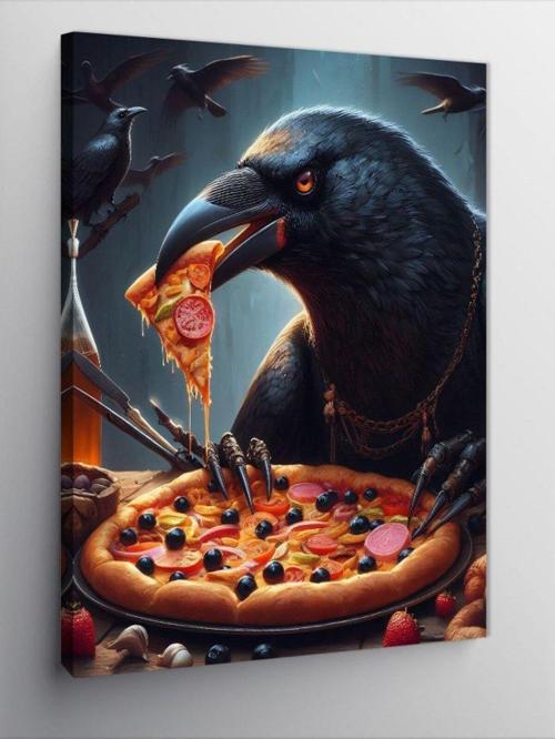 Karizmart Kanvas Tablo Pizza Yiyen Karga