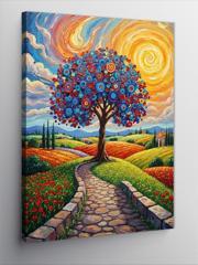 Kanvas Tablo Renkli Ağaç ve Yürüyüş Yolu