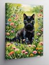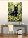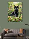 Kanvas Tablo Renkli Çiçekler Ve Siyah Kedi