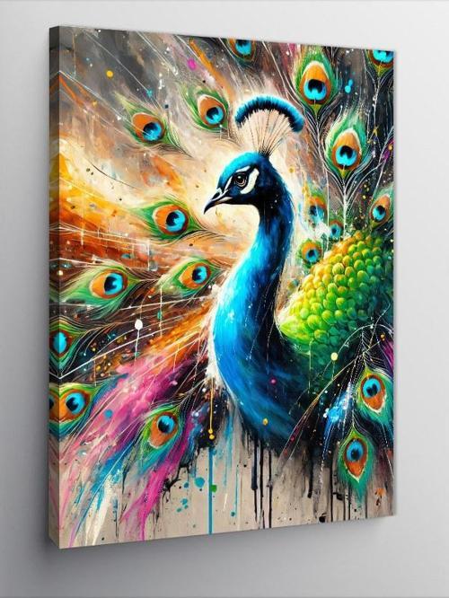 Kanvas Tablo Renkli Tavuskuşu Çizimi