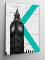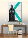 Tablomega Kanvas Tablo Saat Kulesi ve Geometrik Çizgiler