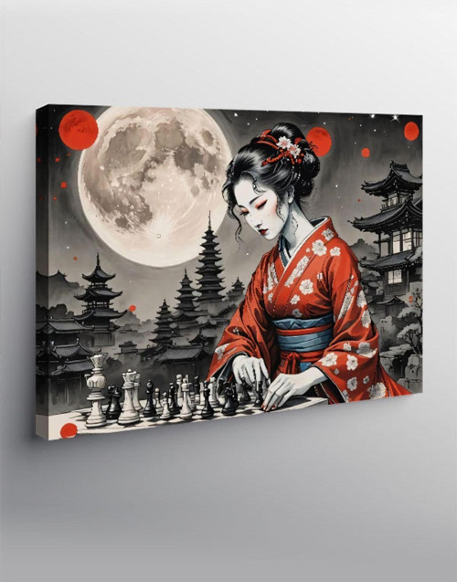 Kanvas Tablo Satranç Oynayan Geyşa