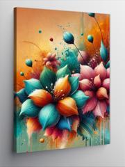 Kanvas Tablo Turkuaz Ve Pembe Çiçekler