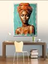 Tablomega Kanvas Tablo Turuncu Başörtülü Afrikalı Kadın
