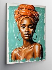 Kanvas Tablo Turuncu Başörtülü Afrikalı Kadın