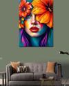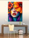 Kanvas Tablo Turuncu Çiçekli Kadın