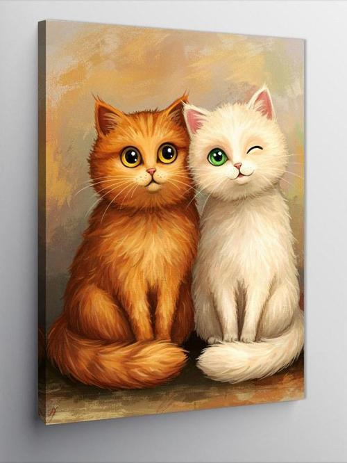 Kanvas Tablo Turuncu ve Beyaz Kediler