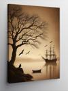 Karizmart Kanvas Tablo Yaprakları Dökülmüş Ağaç Ve Gemi