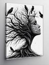 Kanvas Tablo Yaprakları Dökülmüş Ağaç Ve Kadın