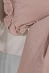 OEKO-TEX sertifikalı %100 pamuk kumaştan üretilen bu 4 parçalık takım, nefes alabilen dokusu ve el işçiliğiyle hazırlanmış detaylarıyla öne çıkar.