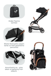 - Tek el hareketi ile otomatik kapanma. Böylece bebek arabanızı katlarken diğer bir elinizle rahatça bebeğinizi tutabilirsiniz.