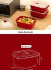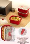 Her kabın kapağında bulunan kırmızı basmalı hava deliği, kapağı çıkarmadan mikrodalgada güvenli ısıtma sağlar..