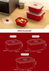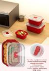 Her kabın kapağında bulunan kırmızı basmalı hava deliği, kapağı çıkarmadan mikrodalgada güvenli ısıtma sağlar..