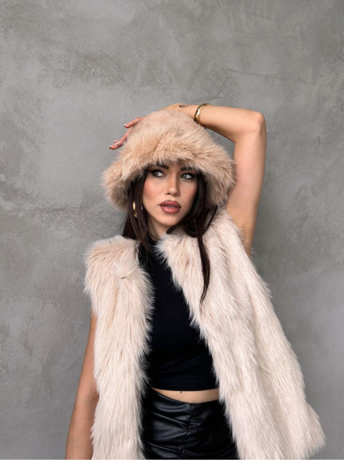 Kapin Kürk Yuvarlak Kalpak Şapka Peluş Slavic Şapka - Vizon