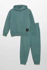 For You Kids Kapişonlu Etiket Detaylı Jogger Yeşil Alt Üst Takım