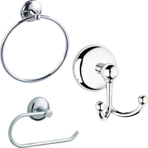 Vidalı Üçlü Banyo Aksesuar Seti - Yuvarlak Havluluk - Banyo Askısı - Tuvalet Kağıtlık