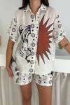 Tarzınızı yansıtan şıklık ve konfor bir arada! Kaplan baskı detayıyla dikkat çeken keten kumaş şortlu takım, yaz aylarında hem rahat hem de trend bir görünüm sunar. Hafif ve nefes alabilen yapısıyla sıcak günlerde ferah bir kullanım sağlar.
