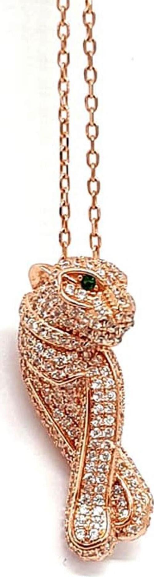 Gümüş Üzerine rose altın kaplama kaplan tasarımlı zirkon taş işlemeli kolye